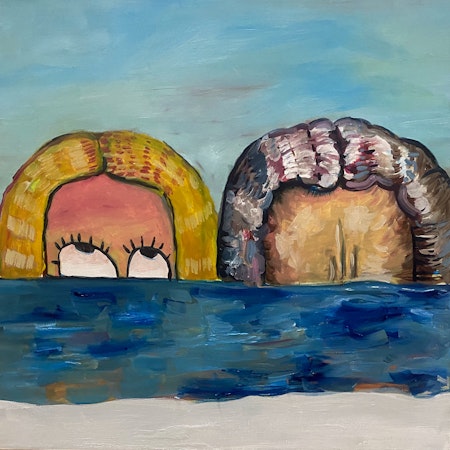 I am invited over to dinner to discuss Sam George and Lisa Radford’s Veronica Franco v Instagram. Sam is cooking. I had been very enthusiastic about The Dugong Sublime, the first iteration of this project, staged in This is a Poem at Buxton Contemporary in 2021. I was also enthusiastic about Sam’s cooking. Whilst as a studio neighbour, I had been privy to conversation in the project’s development and was concerned that my writing would only add another tangent to this expanded work: the dugong, the sublime, the romantic conceptualism of Mutlu Çerkez’s self-portrait and the forensic accounting of Stuart Ringholt’s personal belongings; propped up as these artworks were by nipples cast in bronze. The Dugong Sublime addressed This is a Poem’s curatorial premise by bridging the fields of art and poetry in its very structure and mode, working between the fields as the term ekphrasis suggests. The artwork was not an annotation, an illustration or a typographic NOISE, it was a series of nodes or perhaps more fittingly buoys, to swim between. Another buoy in the work was the accompanying performance, a type of language collage, a syntactical disruption or play with Hannie Rayson’s 1991 script for Hotel Sorrento. Staged on a mezzanine walkway, a type of architectural jetty to the main installation, the audience were forced to sit underneath the mezzanine, perhaps alienated by the cultural references, or lamenting the diminished role of art and poetry in Australian life. I couldn’t help but identify with the snob in The Dugong Sublime. Both cringing and delighting at the disruptive space of Tina Arena’s pop song Sorrento Moon in Hotel Sorrento – the canonical Australian play (and film), which at the time, I had never seen or read. Between the dinner party banter on cultural cringe, I take another slice of focaccia which Sam has generously baked.